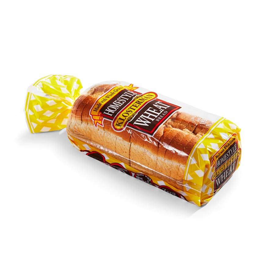 24 oz split-top wheat bread packed in Klosterman branded printed packaging is designed for both CPG commercial grocery shelf and foodservice accounts.
