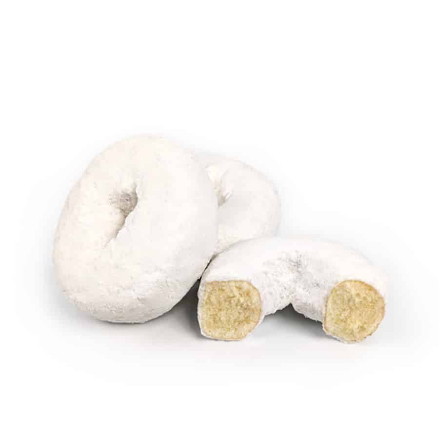 Klosterman Powdered Sugar Donuts are the perfect way to start your day. An ordinary plain cake donut is transformed into an extraordinary delight with one simple ingredient…powdered sugar. Our powdered sugar donuts pair well with napkins and hot coffee. Embrace the goodness of this classic combination.