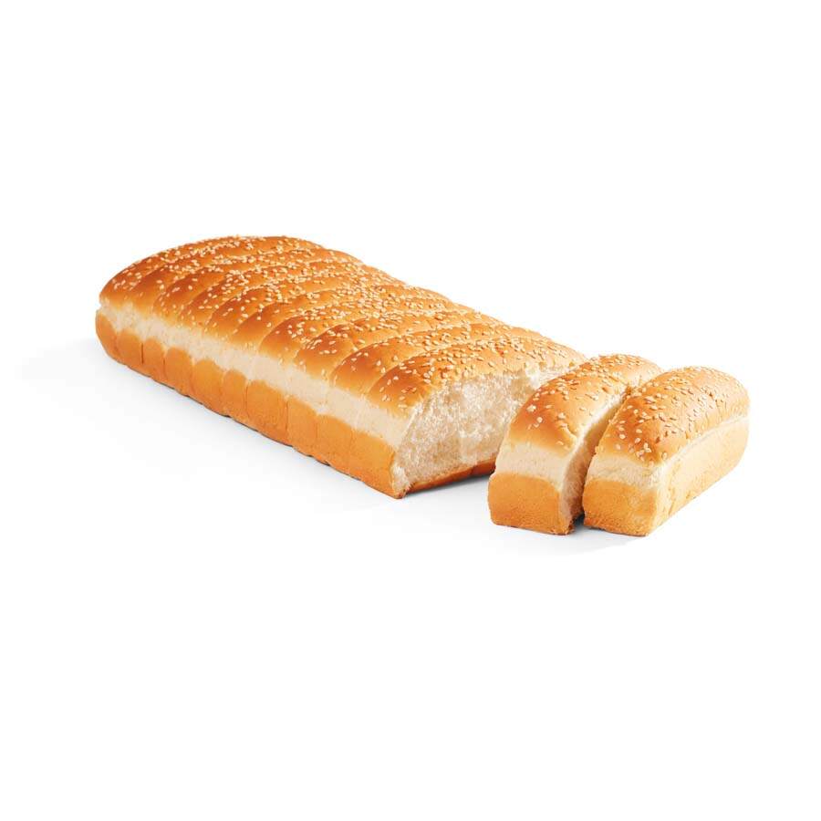 Our BBQ Bread also known as Texas Toast is very similar in size and shape of a traditional New England style hot dog bun. One loaf features 12 fully baked, clustered, sesame seeded, non-sliced six inch buns.