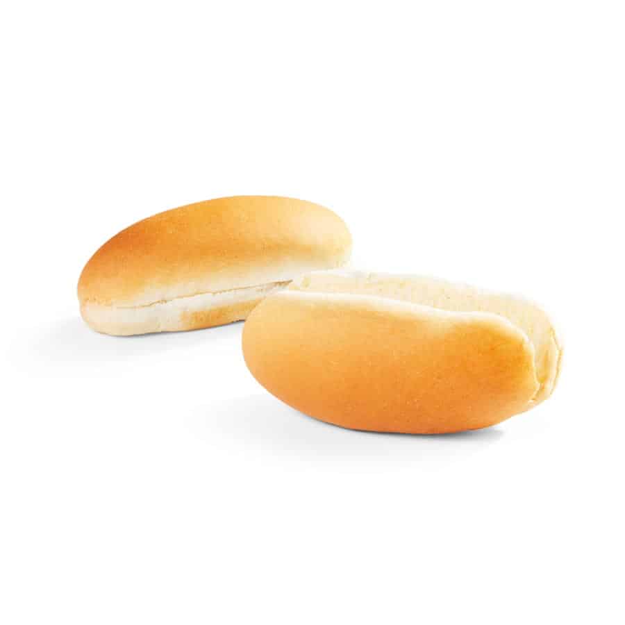Individual 4.25 inch hinged-sliced small hot dog buns 12 per pack.